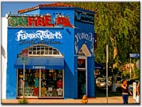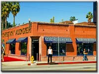 The Farmers Market is one of the most popular sights in Los Angeles, an official Los Angeles Cultural and Historical Landmark drawing over 3 million visitors a year. The charm of the Farmers Market lies in unpretentious connection to the past: red vinyl stools and green Formica counters, green-painted folding chairs. The crowd is a combination of Hollywood locals who still come here to buy meats and produce and tourists licking ice cream cones. Los Angeles Times still lists the Farmers Market as the best place in Los Angeles to spot celebrities. The Grove at Farmers Market, an 80,000 square foot retail and restaurant complex opened in 2002. Tied to the Farmers Market by a gleaming green streetcar and a simulated main street, it adds more attractions at the corner of Third and Fairfax. A few older storage buildings were taken down to make way for the construction, but the Farmers Market remains intact, making it possibly one of the most interesting seventy-somethings in Los Angeles. Los Angeles tour groups